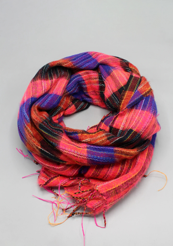 Handgeweven wollen sjaal - paars, roze, zwart en oranje