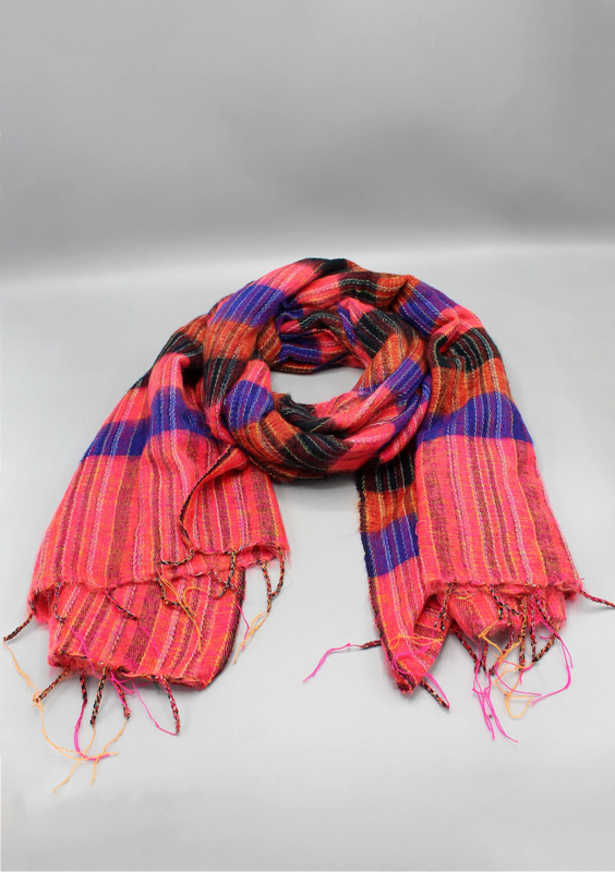Artikelnummer: WYS91Handgeweven wollen sjaal - paars, roze, zwart en oranje