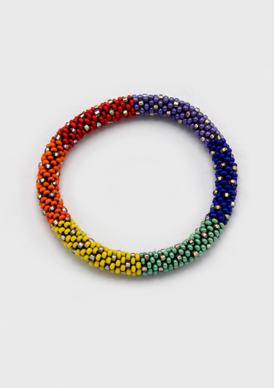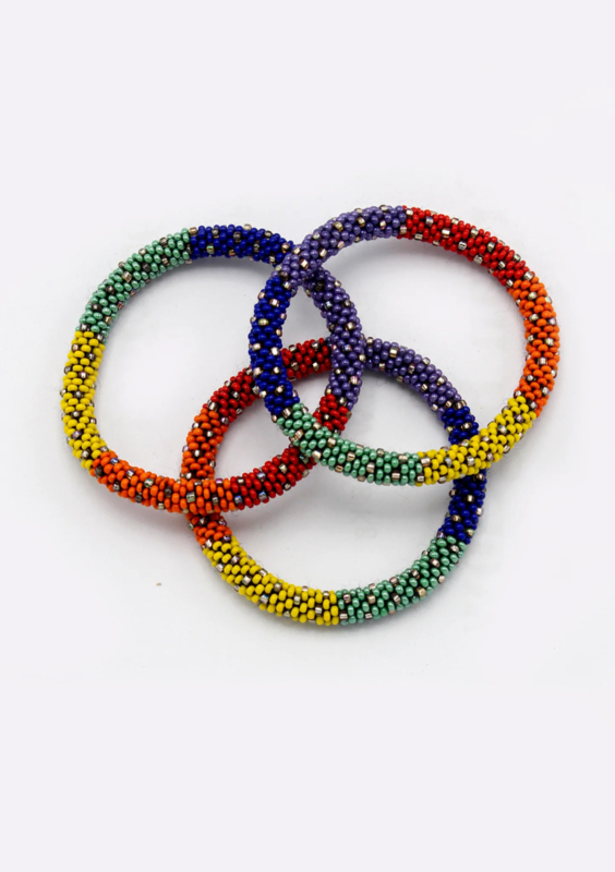 Each bracelet is carefully hand-strung by one of the artisans into a so-called “roll-on” bracelet, allowing the shape and design to stand out beautifully.